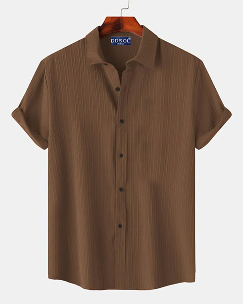 A lightweight, breezy short-sleeve shirt in a warm brown tone. Features a subtle textured stripe pattern and relaxed collar for easy comfort. Ideal for casual outings, weekend looks, or laid-back holiday wear.